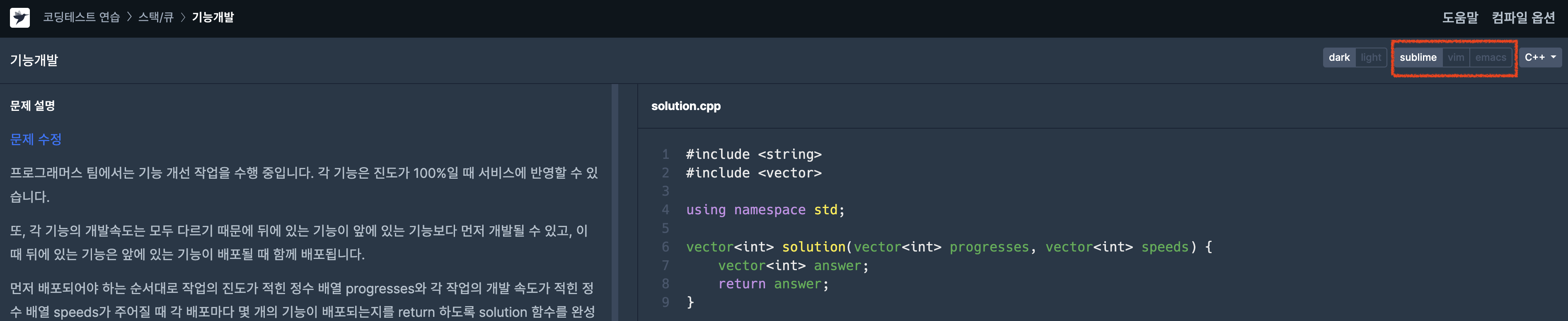 코드 에디터의 우측 상단에 있는sublime, vim, emacs 중