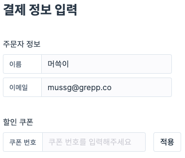 결제 시, 할인 쿠폰 코드를 입력하고 적용 버튼을 클릭해주시면 됩니다.